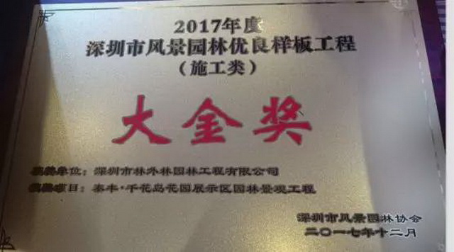 熱烈慶?!疤┴S·千花島”又榮獲大獎---深圳風景園林類優(yōu)良樣板工程(施工類)大金獎!泰豐出品,必屬精品!