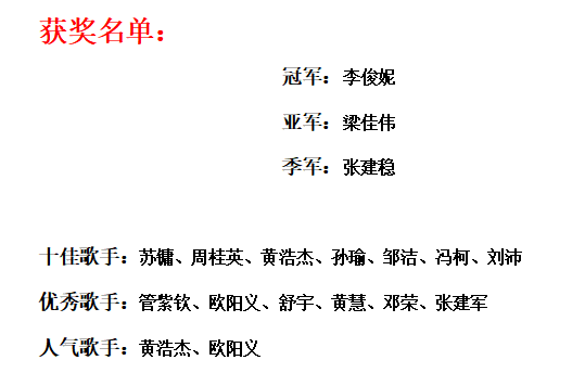 “泰度飛揚(yáng) 同路高歌”決賽現(xiàn)場,選手們驚人的唱功,對音準(zhǔn)和節(jié)奏游刃有余的拿捏,穩(wěn)定發(fā)揮Hold住全場的臺風(fēng),都讓人眼前一亮。經(jīng)過3個多小時的激烈比拼及評委的共同商議,由李俊妮、梁佳偉、張建穩(wěn)三位歌手榮獲本場比賽的冠亞季軍。