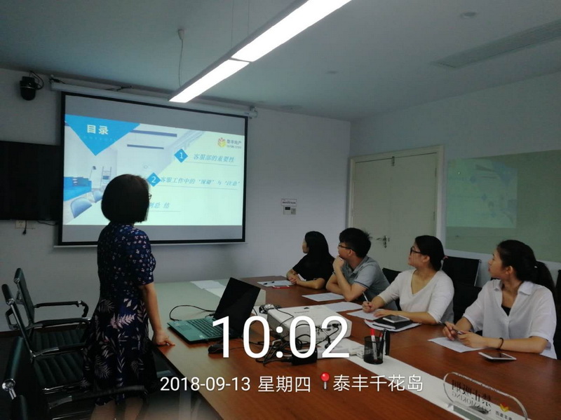 培訓(xùn)由客服部客服經(jīng)理王薇主講,整個培訓(xùn)過程從規(guī)避風(fēng)險、前期防范、溝通售后等方面進行詳細講解,并多出舉例說明,讓客服部同事收益匪淺。