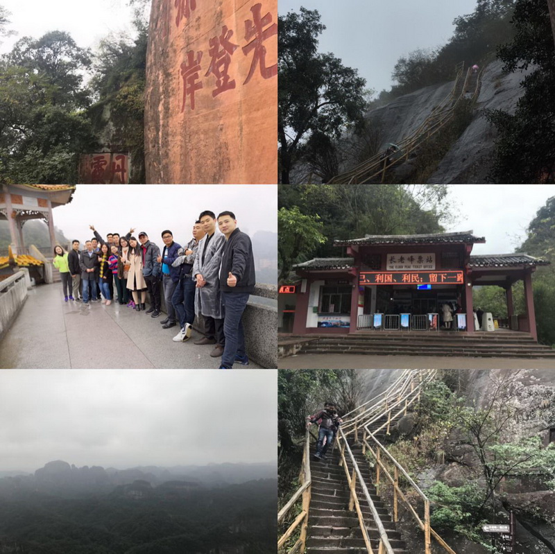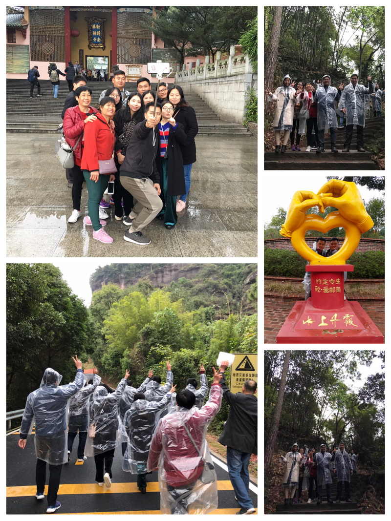 再來(lái)到著名丹霞山。古語(yǔ)有言“桂林山水甲全國(guó),不及廣東一丹霞,色如渥丹、燦如明霞。”韶關(guān)丹霞山,一直是公司小伙伴們期待已久的游覽地點(diǎn)。其中,長(zhǎng)老峰是丹霞山的主峰之一,雖然天空下著朦朧細(xì)雨,但絲毫不影響同事們的熱情,大家冒著風(fēng)雨登上長(zhǎng)老峰,感受了一番“一覽眾山小”,堅(jiān)持就是勝利,這大概就是不畏艱苦爬上頂峰的優(yōu)越感吧。