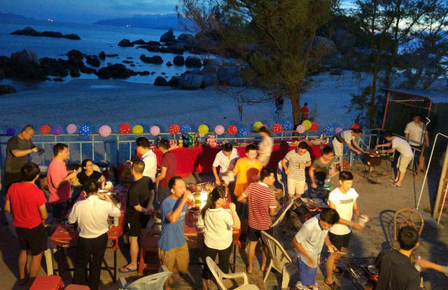 伴著皎潔的月光,聽(tīng)著悅耳的海浪,露天K歌也別有一番味道,動(dòng)人的歌聲將現(xiàn)場(chǎng)氣氛推向高潮。大家在這個(gè)和諧的大家庭里,感受著親人之間的溫馨和溫暖。