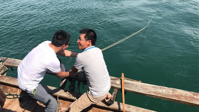 第二天一早,興致昂揚(yáng)的同事們?cè)缭鐏?lái)到碼頭集合,我們出海捕魚(yú)啦!漁船駛離港口撒下漁網(wǎng),途中欣賞三角洲島碧綠的水、湛藍(lán)的天,無(wú)比愜意。最后在大家的期待和男同胞齊心合力下收網(wǎng),雖然休漁期收獲不多,但我們體會(huì)的是捕魚(yú)過(guò)程的快樂(lè)。