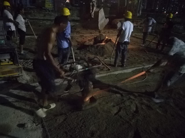 晚上工人們還在加班加點(diǎn)的趕工,把因?yàn)橄掠暄诱`的工期給趕回來。在雨天搶工期間,項(xiàng)目部領(lǐng)導(dǎo)班子與員工共同奮戰(zhàn)在生產(chǎn)一線,全體員工堅(jiān)守崗位,工作井然有序,以此確保平泰豐花園學(xué)校項(xiàng)目一期于2018年5月底順利移交