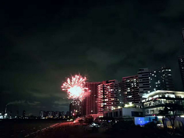 在這30分鐘的時(shí)間里,泡泡海焰火晚會(huì)閃亮綻放,天空作幕、焰火作筆,各式煙花在泡泡海的夜空絢麗綻放。泡泡海項(xiàng)目為業(yè)主帶來的美好祝福,化作五彩繽紛的焰火騰空而起,映紅了沙灘夜空,照亮了整個(gè)泡泡海。業(yè)主們在家門口就有了“煙花大會(huì)頭等座”享受,現(xiàn)場一片驚嘆。