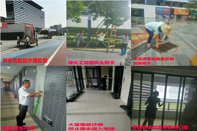在臺(tái)風(fēng)來(lái)襲之前,迅速組織項(xiàng)目和物業(yè)全體聯(lián)合部署抗災(zāi)預(yù)防工作,嚴(yán)格落實(shí)防臺(tái)風(fēng)應(yīng)急預(yù)案,周密部署、眾志成城,全力以赴把損失降至最低程度。