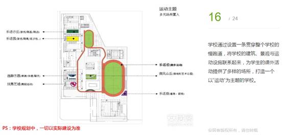 學(xué)校通過設(shè)置一條貫穿整個(gè)學(xué)校的慢跑道,將學(xué)校的建筑、景觀與運(yùn)動(dòng)設(shè)施聯(lián)系起來,為學(xué)生的課外活動(dòng)提供了多樣的場(chǎng)所,打造一個(gè)以“運(yùn)動(dòng)”為主題的學(xué)校。