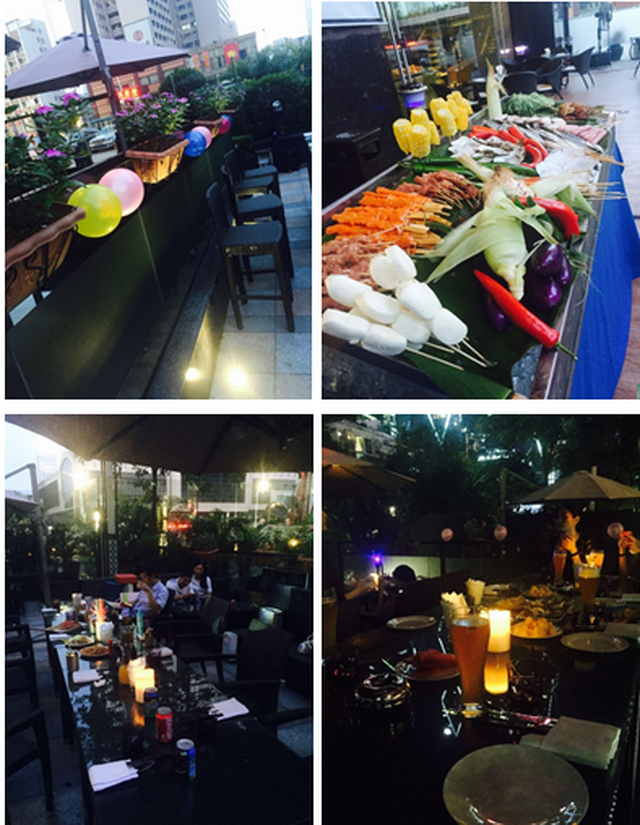 風(fēng)中搖曳的燭光、彩色的氣球、肆意彌漫的燒烤香、讓人迷醉的啤酒無一不顯露出夜晚的浪漫,同事們歡快的聊著……盡情的享受著此刻的浪漫時光。